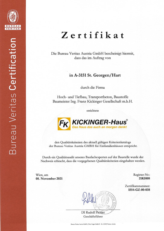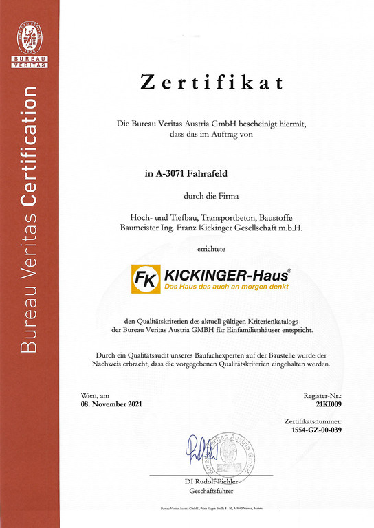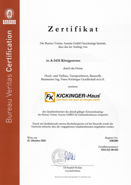 Ein KICKINGER-Haus ist mehr als nur Ziegel und Mörtel. Es ist ein Versprechen für gesundes Wohnen und höchste Ausführungsqualität. Durch unabhängige Experten geprüft und zertifiziert – für ein sicheres Gefühl über Generationen.